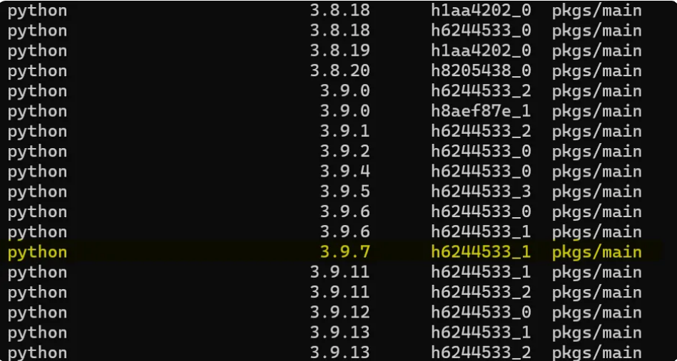 python은 잘 나오고(3.9.7), conda에서도 해당 버전을 지원해 준다면