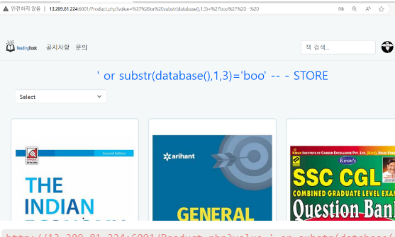 database() ๊ธ์๋ฅผ ํ๋์ฉ ๋ง์ถฐ๊ฐ๋ฉฐ ์ ๋ณด๋ฅผ ํ์ทจํ๋ ๋ชจ์ต.