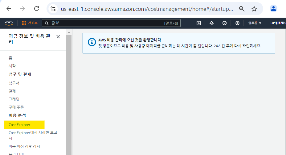 - AWS Cost Explorer를 사용하여 비용이 발생한 항목과 서비스 내역을 확인