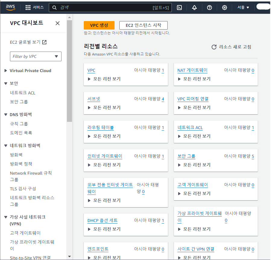 - AWS 리소스는 리전에 따라 독립적으로 관리된다. 한 리전에서 삭제한 리소스가 다른 리전에서는 남아있을 수 있어, 모든 리전에서 리소스가 삭제되었는지 확인해야 함