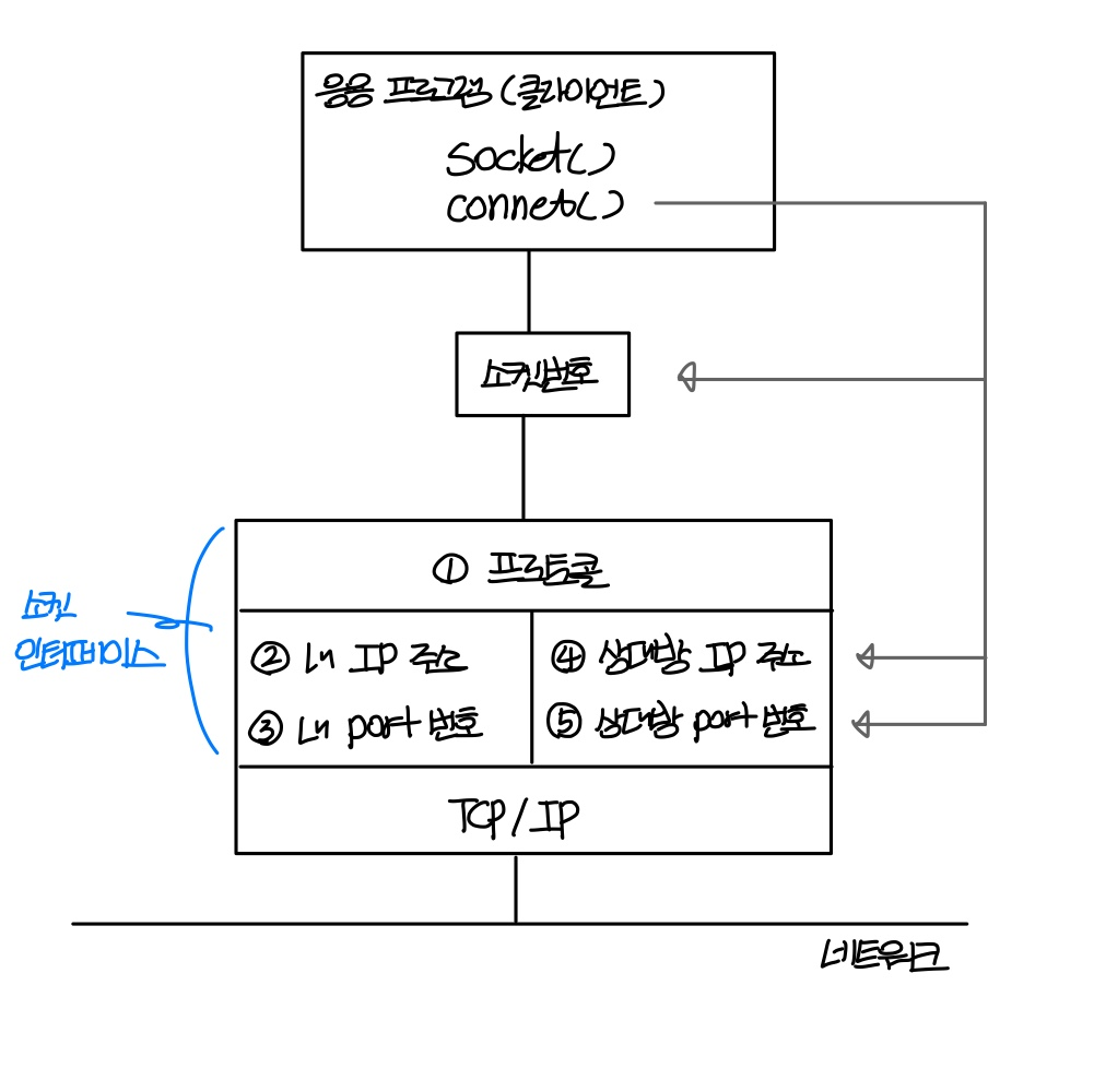 socket() ํธ์ถ ์ ํธ๋์คํฌํธ ํ๋กํ ์ฝ๋ง์ ์ง์ ํ๊ฒ ๋๋๋ฐ socket() ์ํ ์ ๋ด๋ถ์ ์ผ๋ก ๋ฐ์ํ๋ ๋์์ ์๋ ๊ทธ๋ฆผ๊ณผ ๊ฐ๋ค.